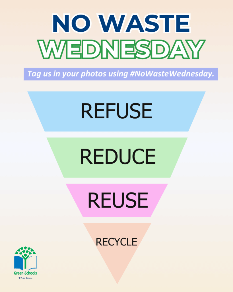 This is a great opportunity to move away from single use packaging or unnecessary waste and look for alternatives. This could be anything from bringing in your reusable water bottle to using less paper during class. Why not get involved in a quick 5 minute litter pick too! Take this opportunity to tackle those Litter Blackspots Send us in any pictures from your No Waste Wednesday or tag us in your posts. #NoWasteWednesay